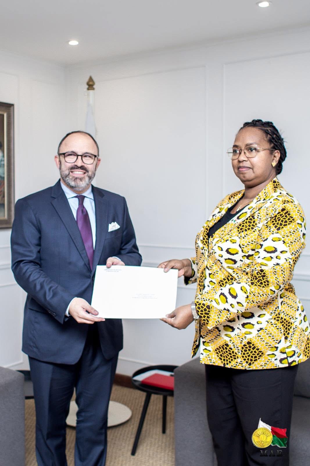 La Ministre des Affaires étrangères, Mme Alice N'Diaye, a reçu hier S.E.M. Arnaud Guillois, Ambassadeur de France à Madagascar.